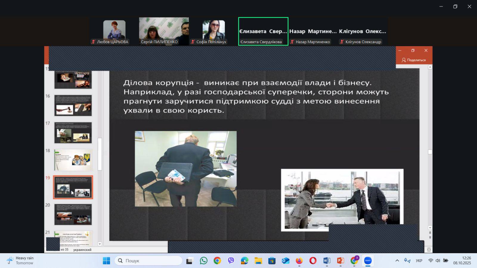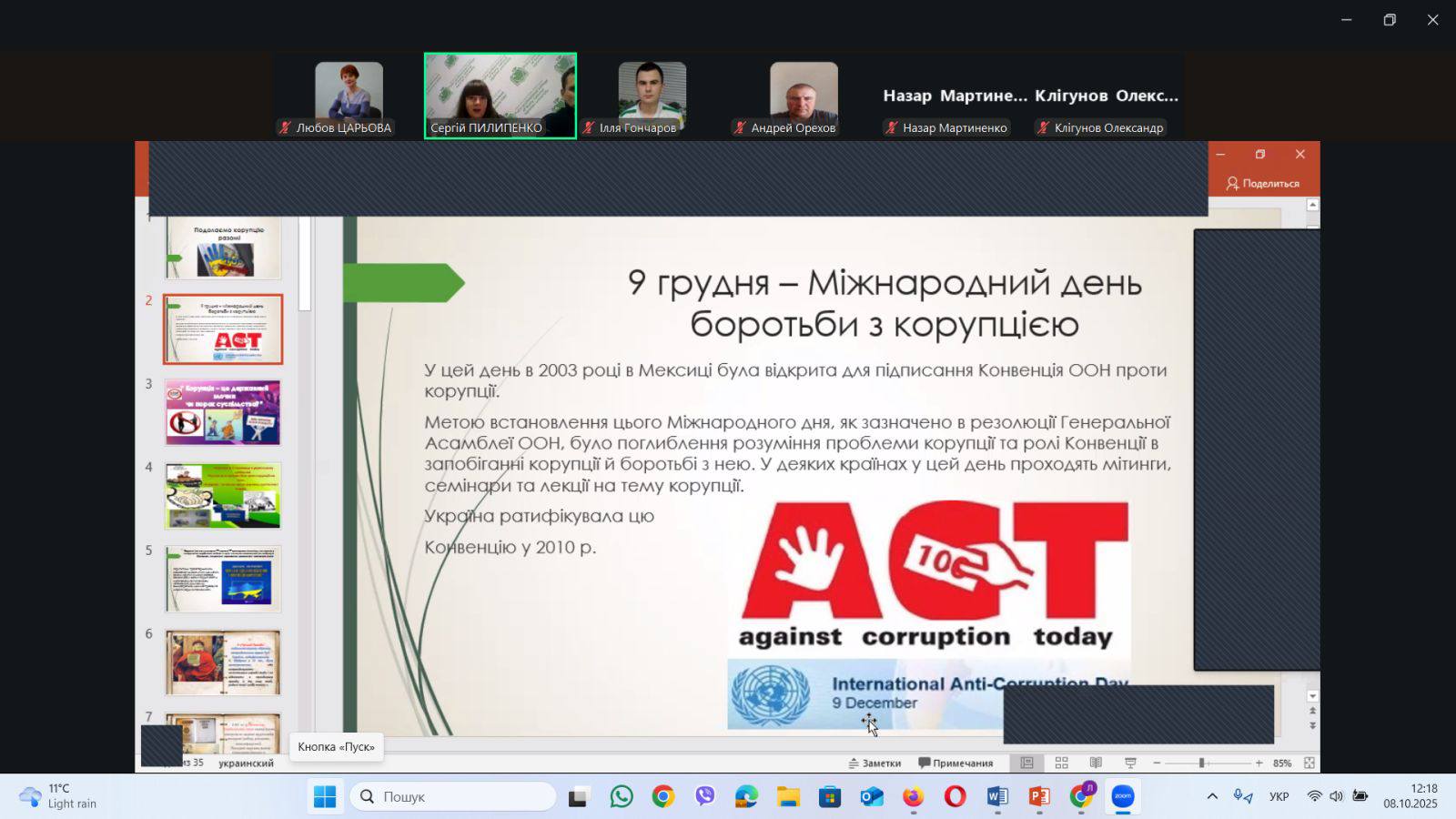 Під час зустрічі студенти обговорили причини виникнення корупції, її негативний вплив на розвиток держави та суспільства, а також шляхи запобігання цьому явищу.