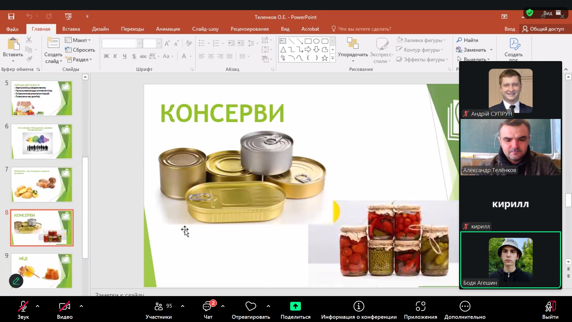 Її підготували та провели куратор 38-с групи Олександр ТЕЛЬОНКОВ разом зі студентами спеціальності Харчові технології ЮВЕНСЬКИМ Кирилом, АГЕШИНИМ Богданом, ІВАНОВОЮ Богданою – майбутніми фахівцями, які знають про їжу абсолютно все!