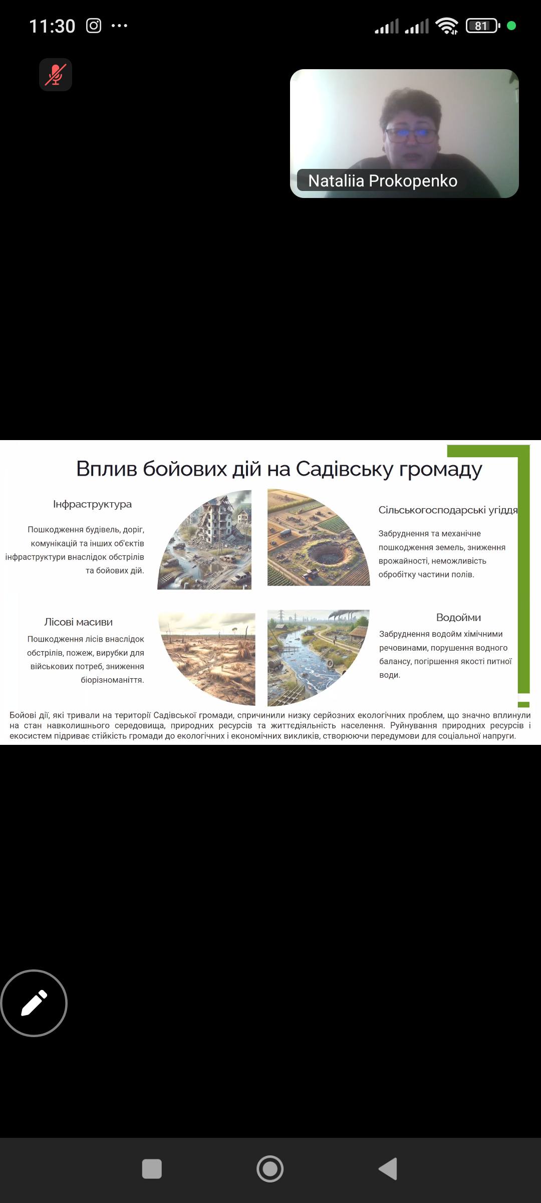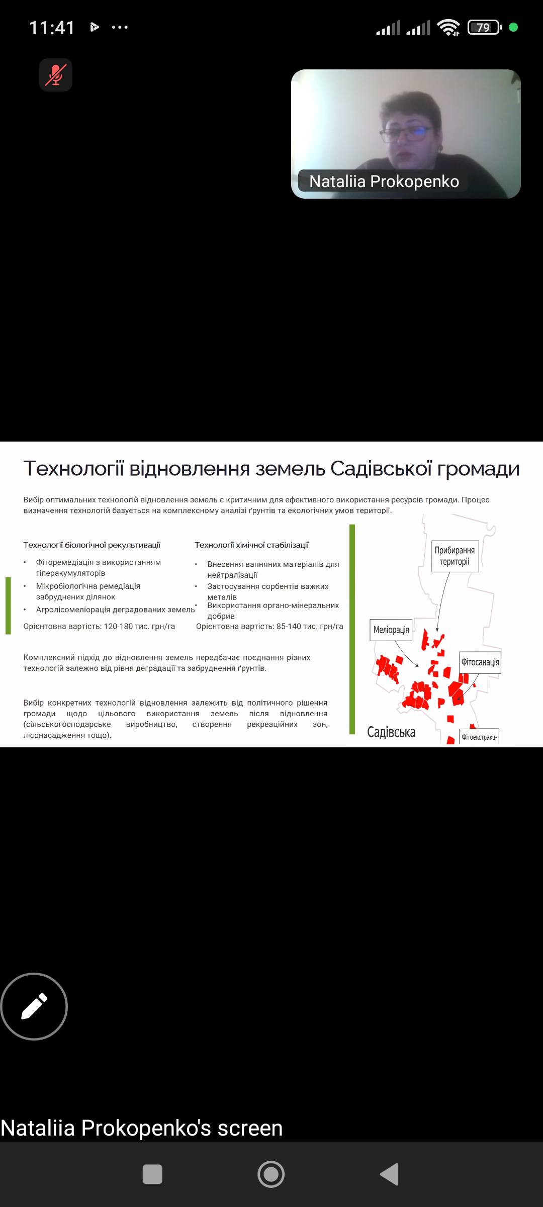 Лектор детально пояснила, які методи використовуються для оцінки рівня пошкодження ґрунтів на прикладі Садівської громади.