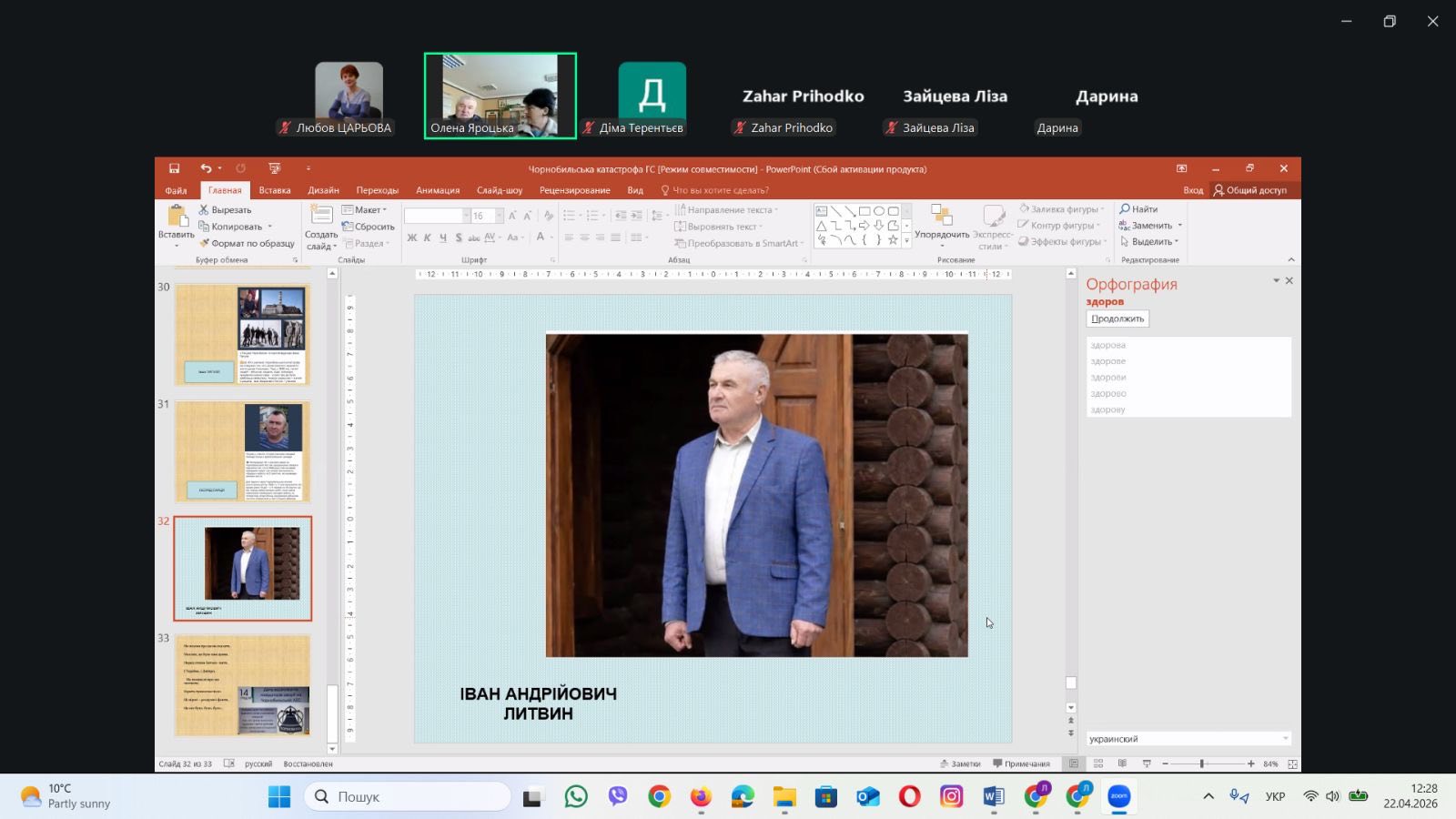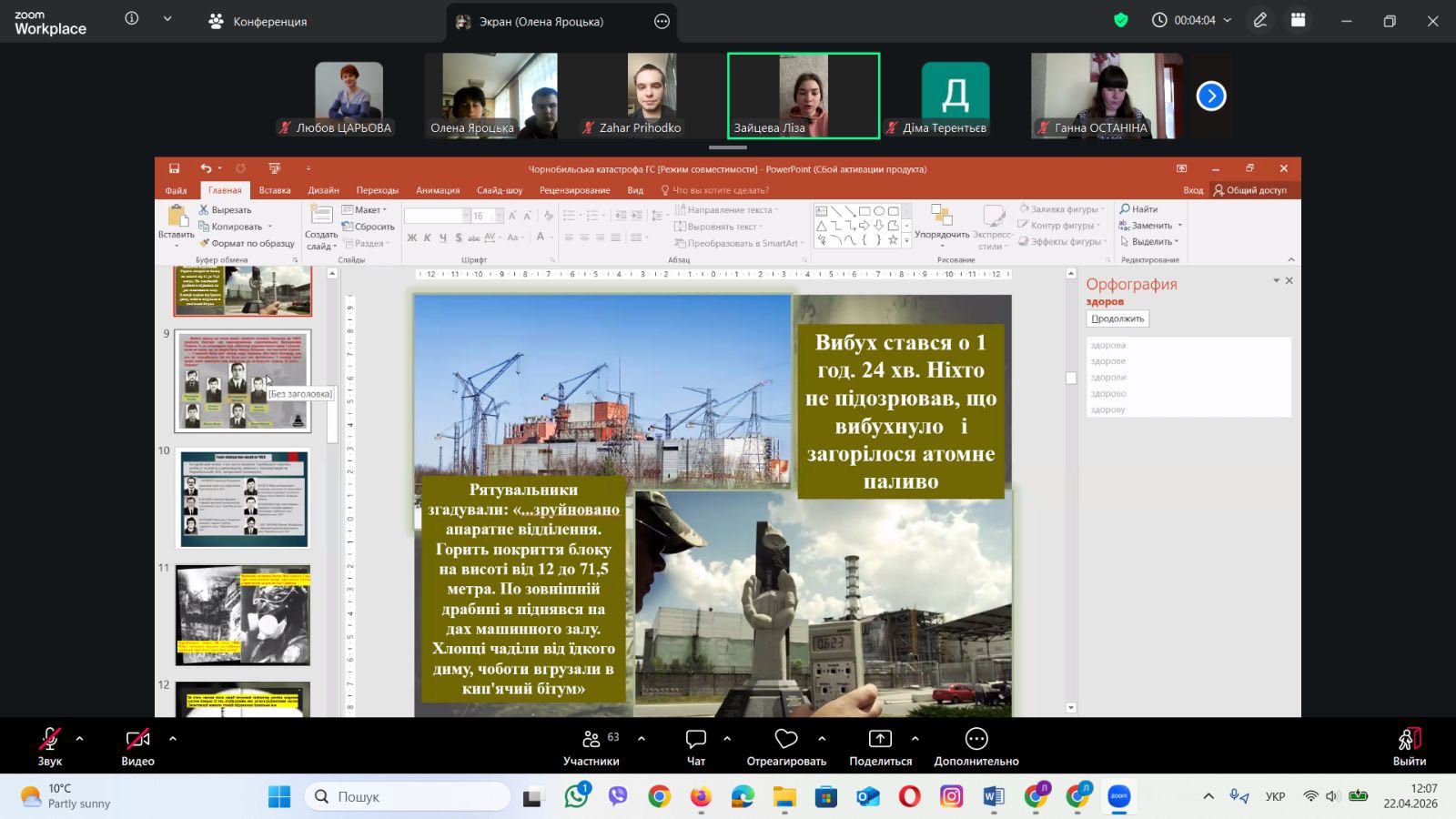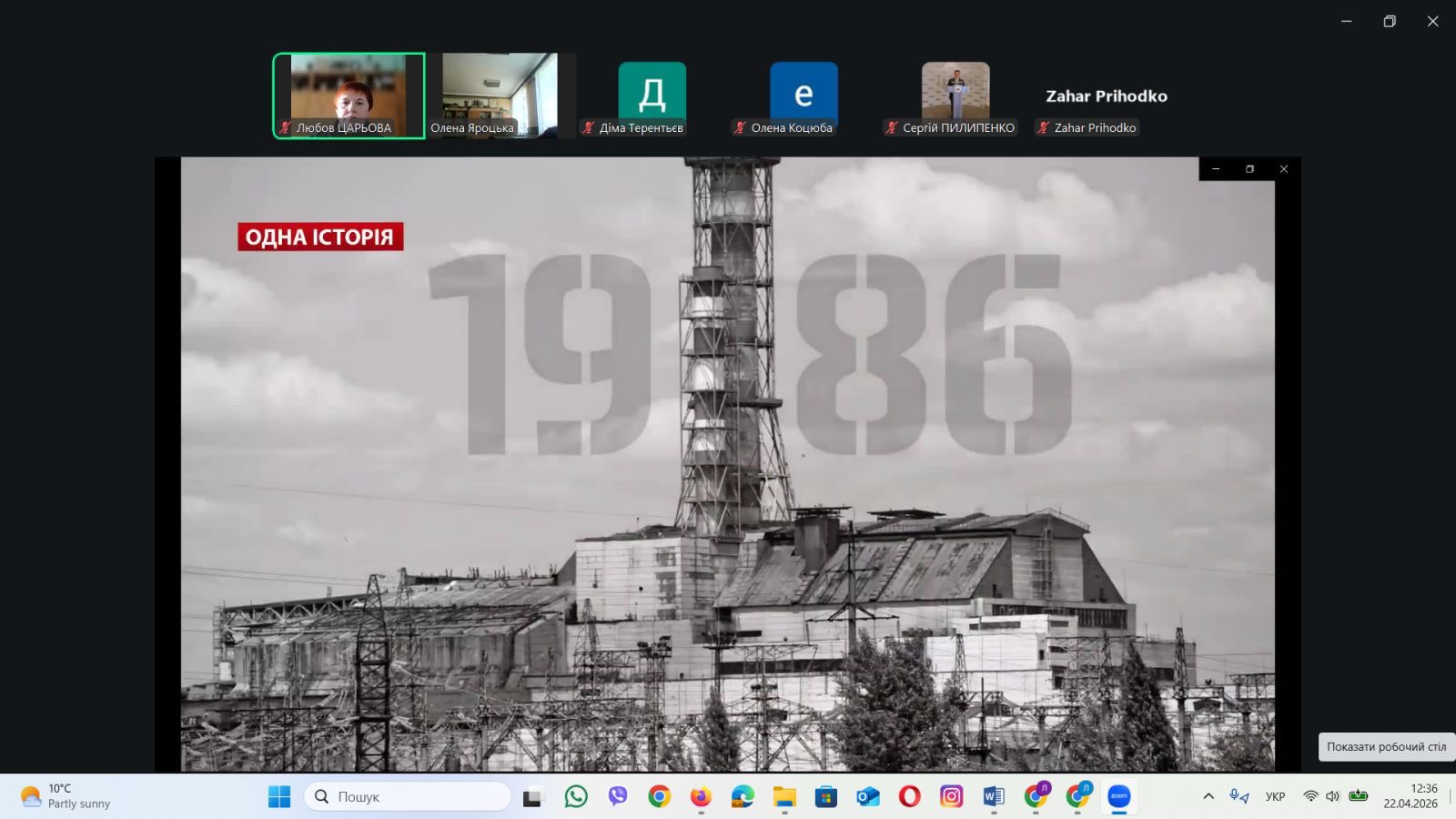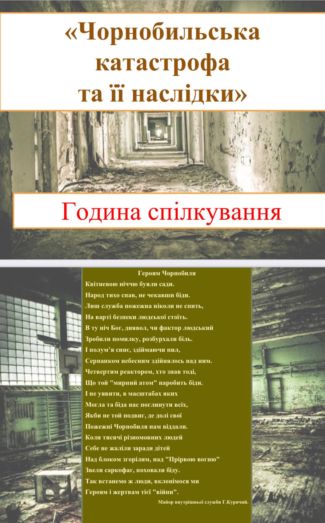 Виховна година памʼяті «Чорнобильська катастрофа та її наслідки» з куратором Оленою Яроцькою, студентами та ліквідатором 1 категорії Іваном Литвиновим.